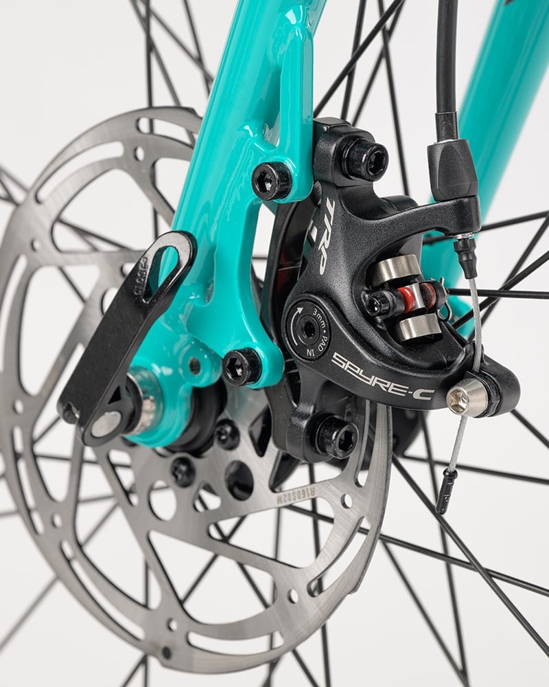 A Shimano CUES 2 x 10-speed drivetrain combined with our own 46/30T chainset gives confidence inspiring shifting and relaiability on any terrain.