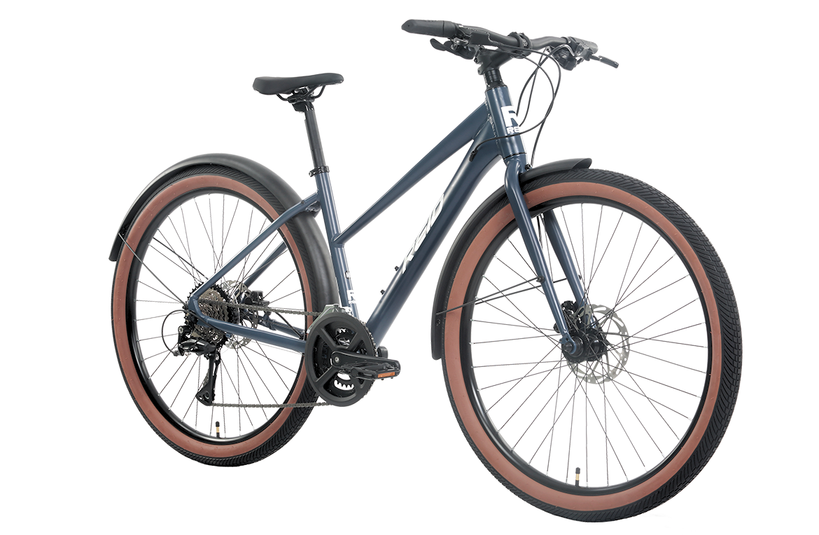 Equipped with Kenda 27.5" x 2.2" tires with tan walls, this bike combines style and performance, offering excellent grip on varied urban surfaces.